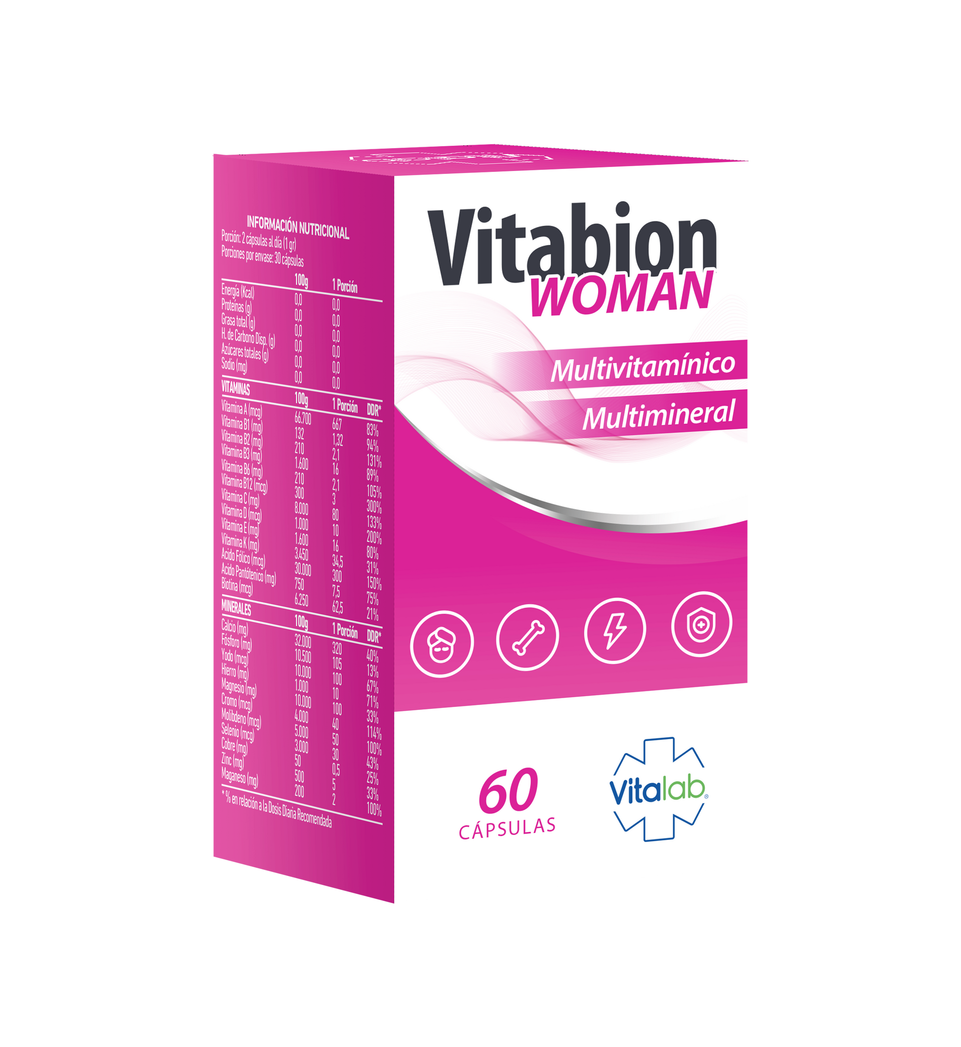 Vitabion es la línea de suplementos nutricionales desarrollada por Vitalab para brindar un apoyo integral a hombres y mujeres que buscan mantener un estilo de vida saludable, activo y equilibrado. Cada versión está formulada con ingredientes de alta calidad, libres de gluten y lactosa, adaptándose a distintas necesidades nutricionales y etapas de la vida.
